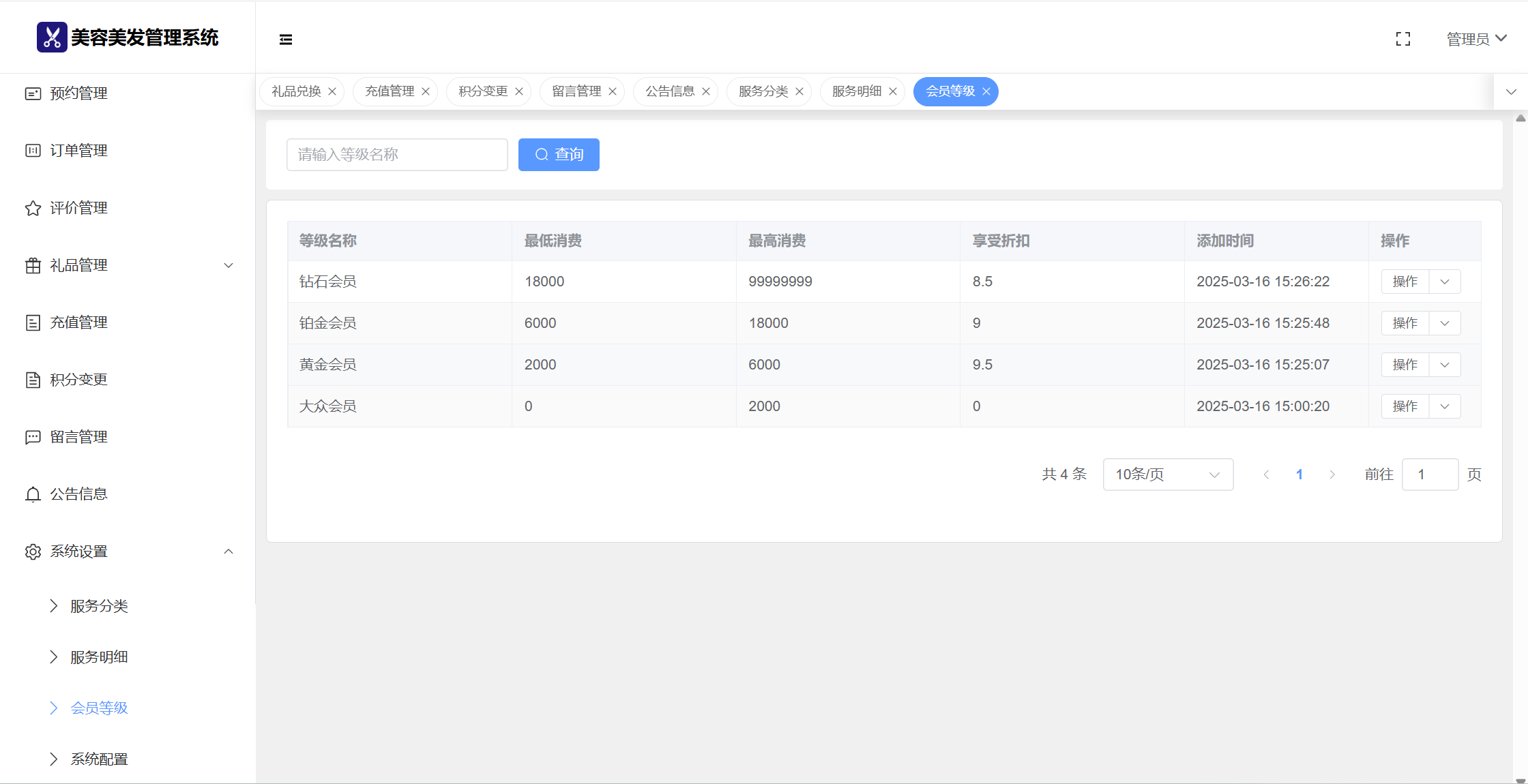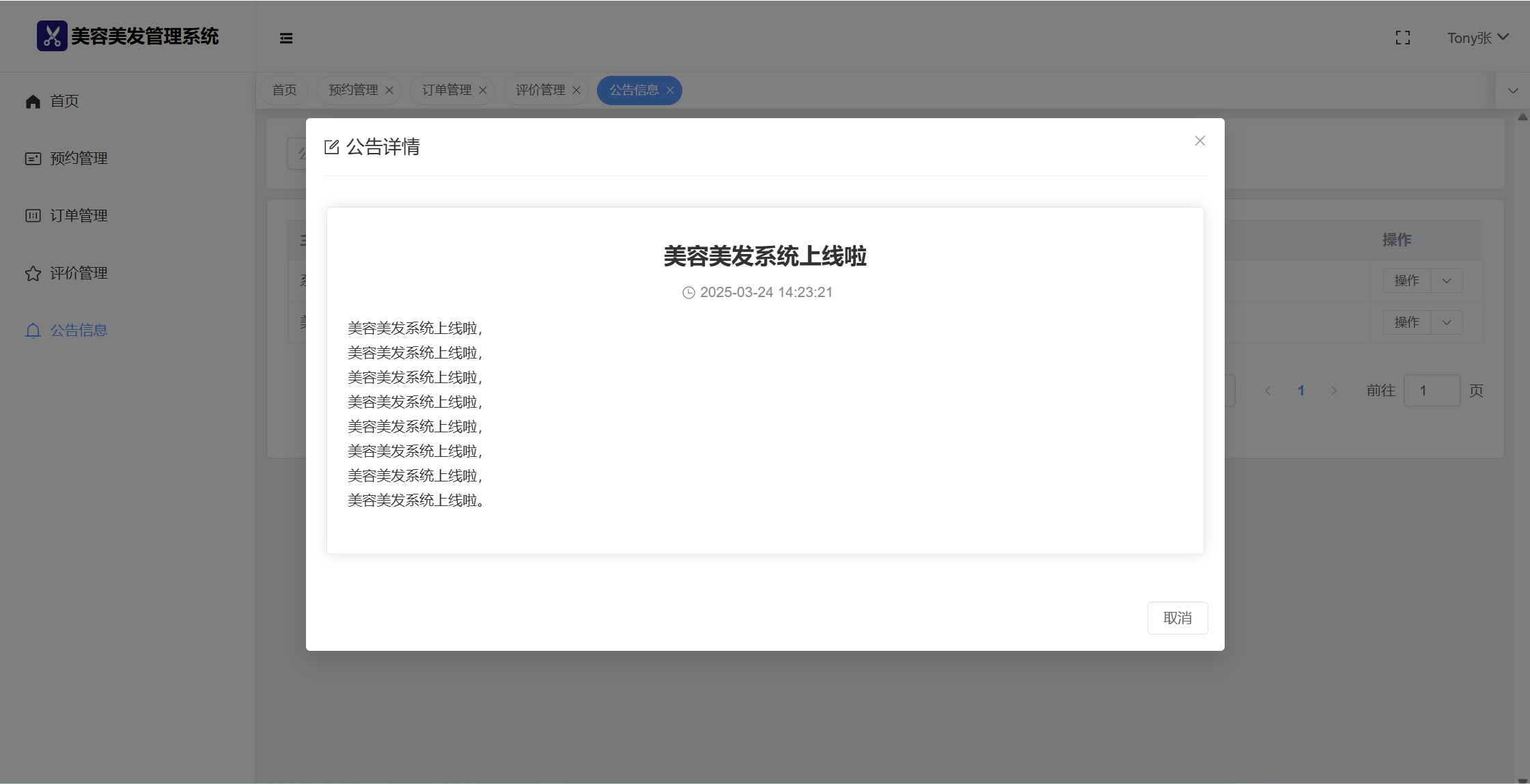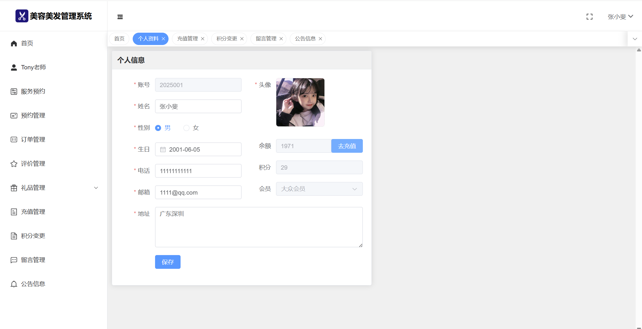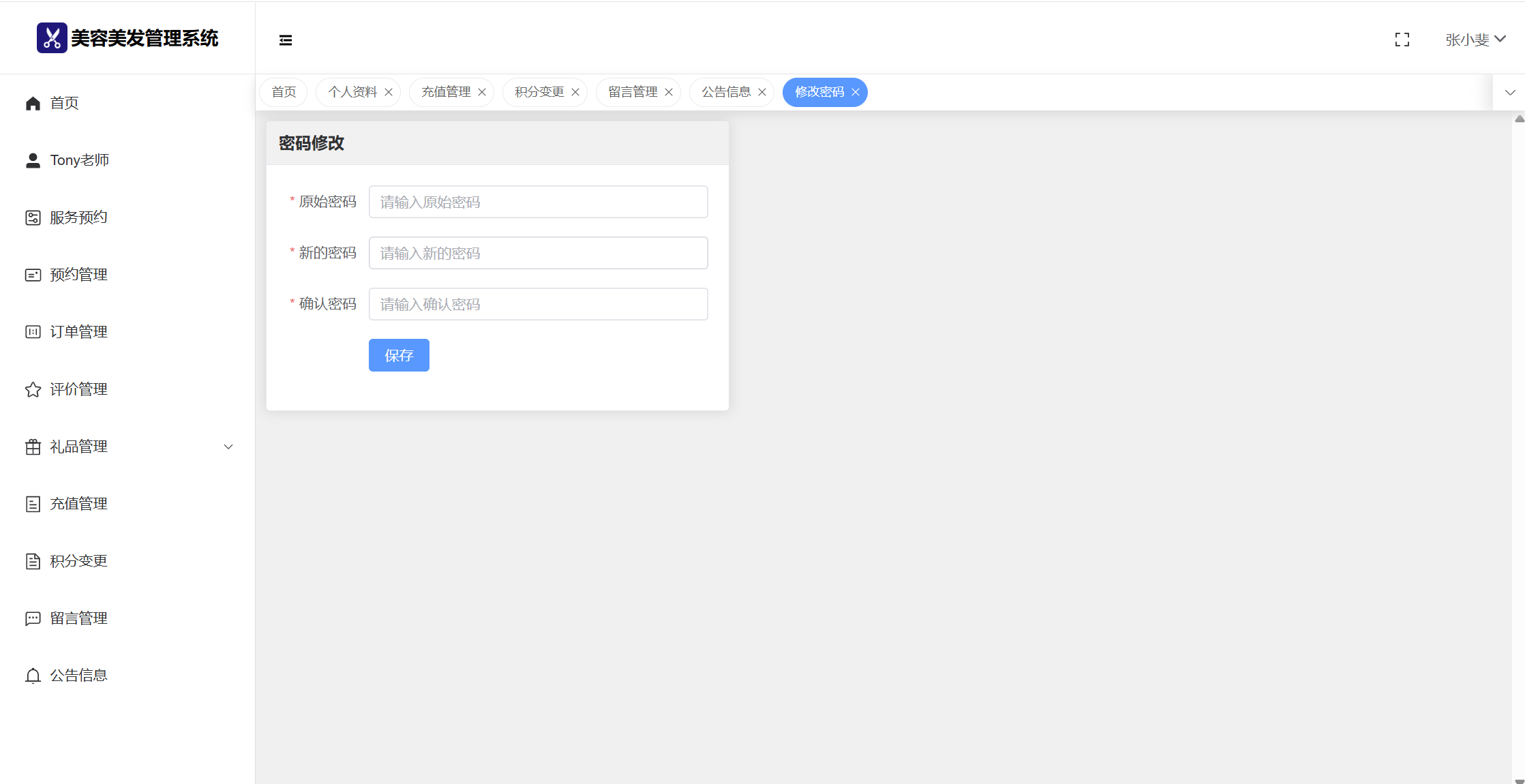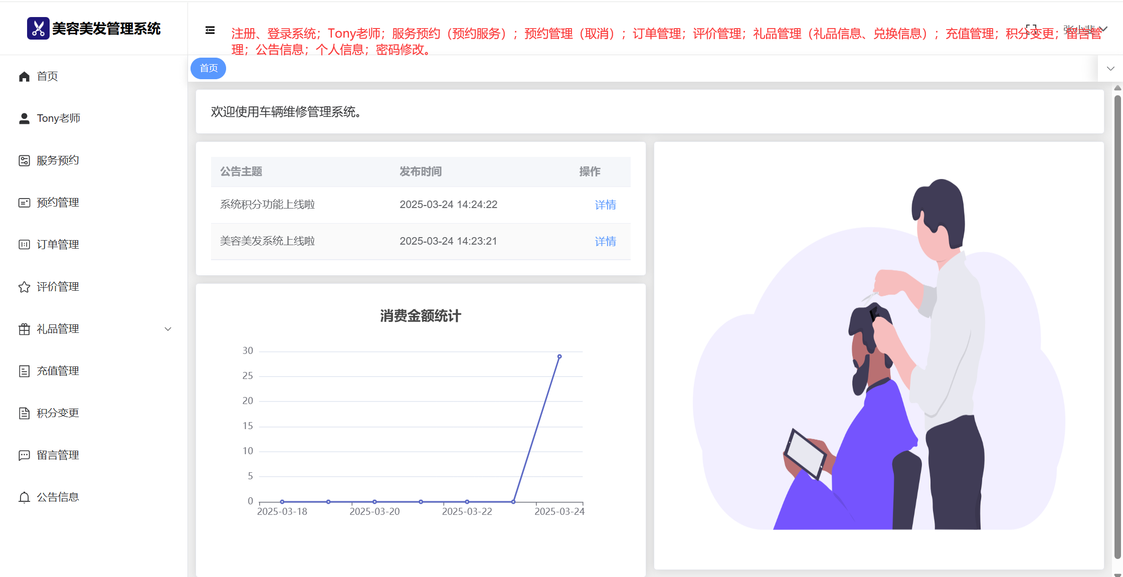 基于SpringBoot3+Vue3前后端分离的美容美发管理系统,本人原创开发。