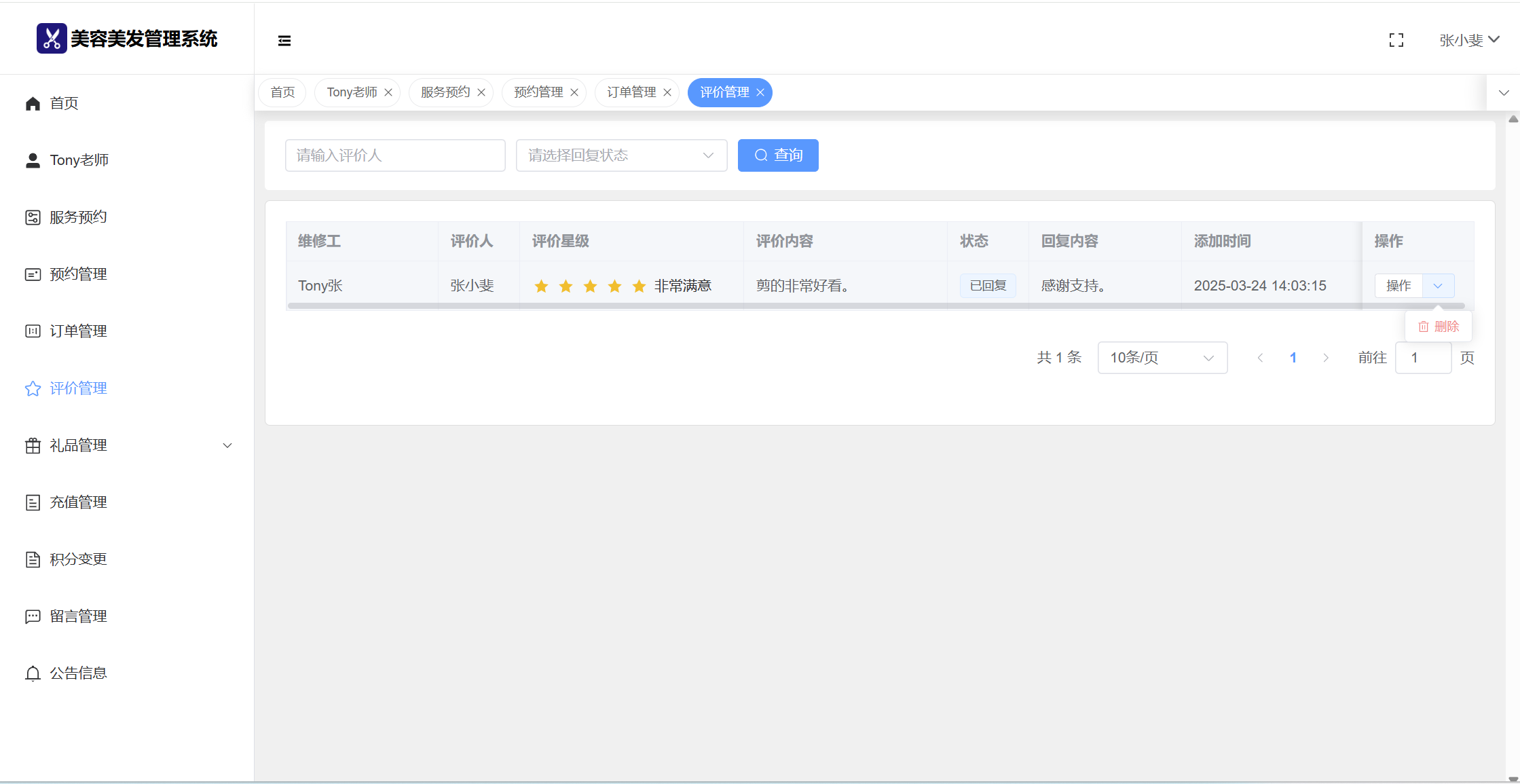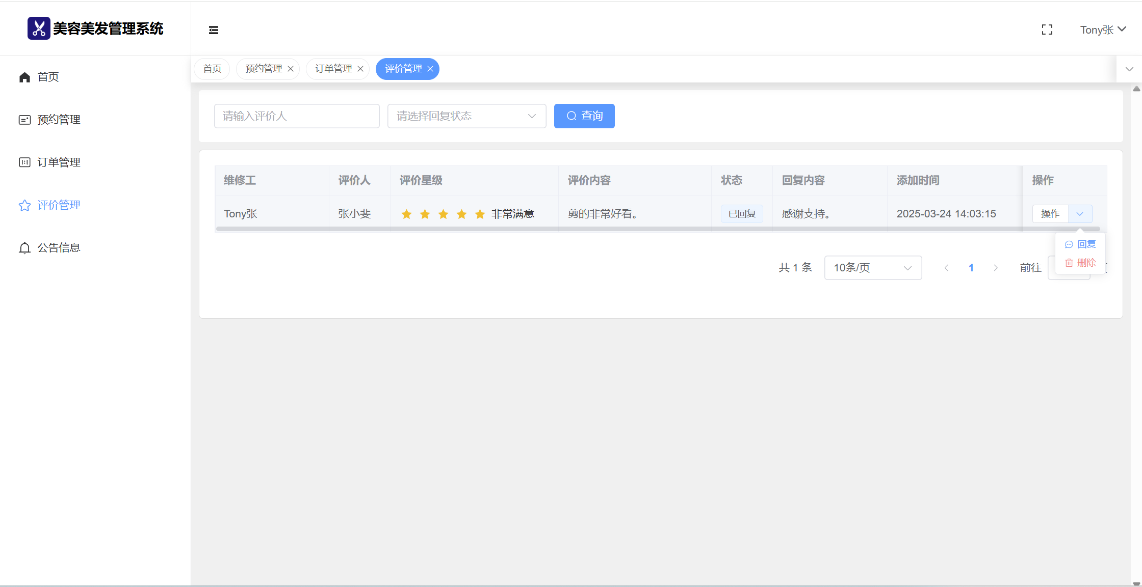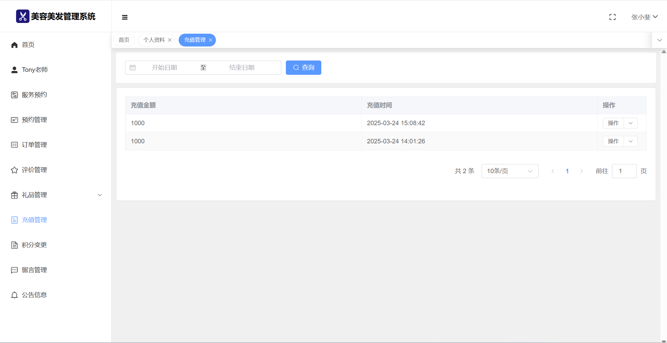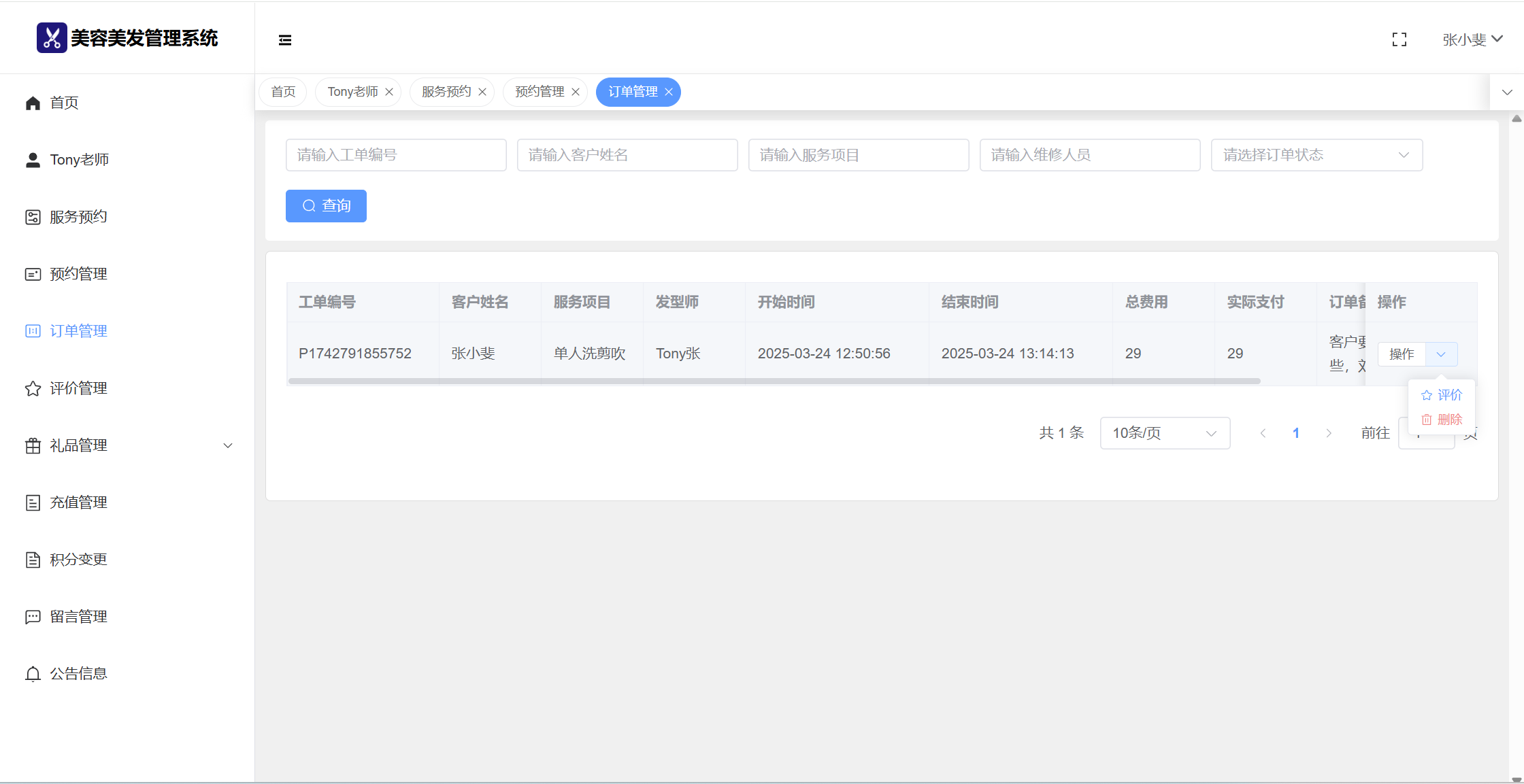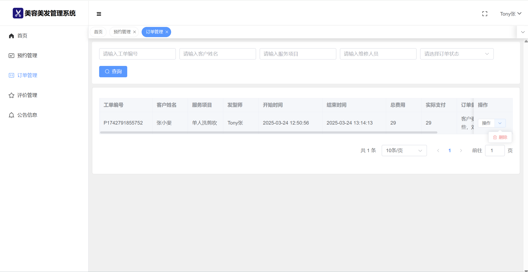 基于SpringBoot3+Vue3前后端分离的美容美发管理系统,本人原创开发。