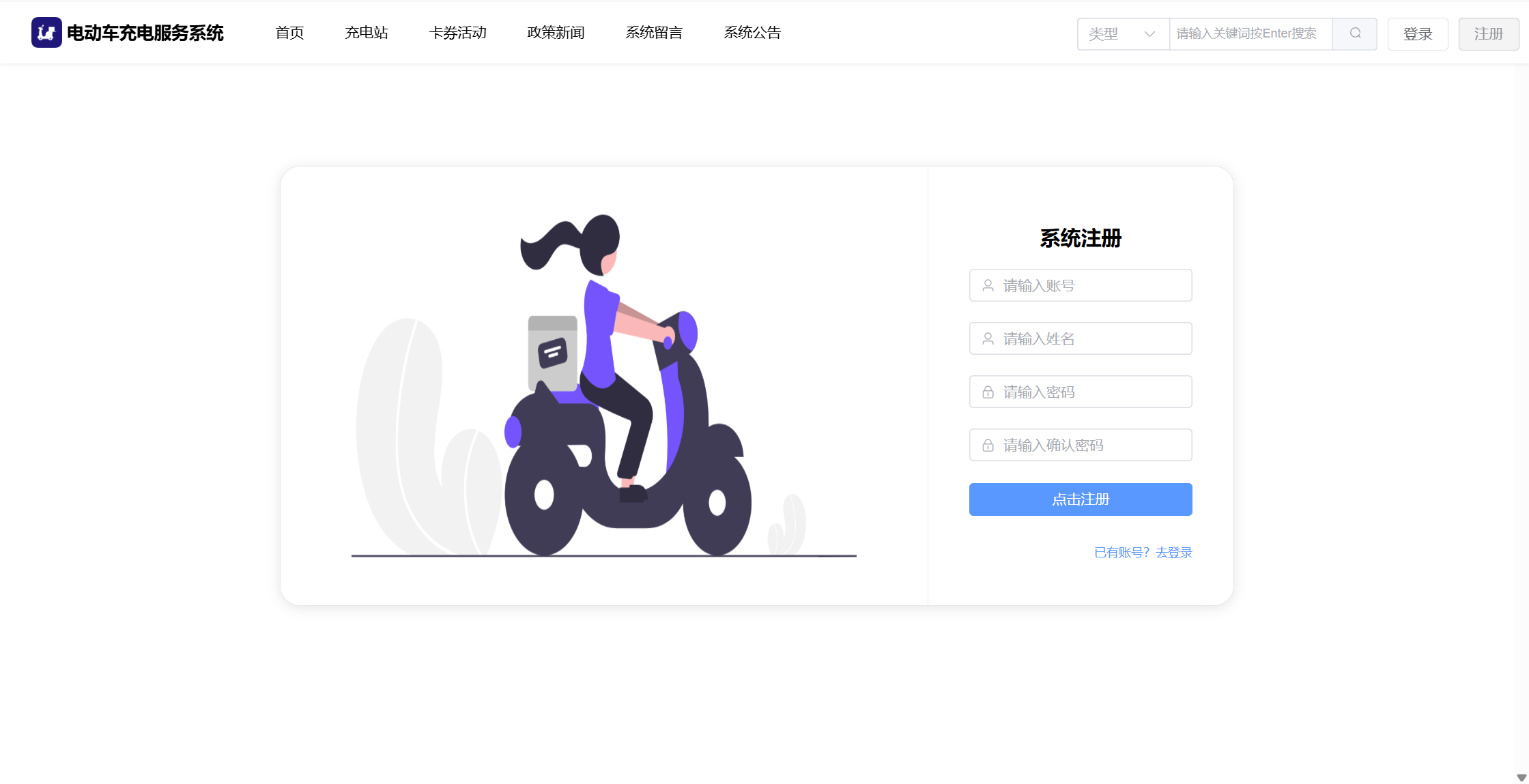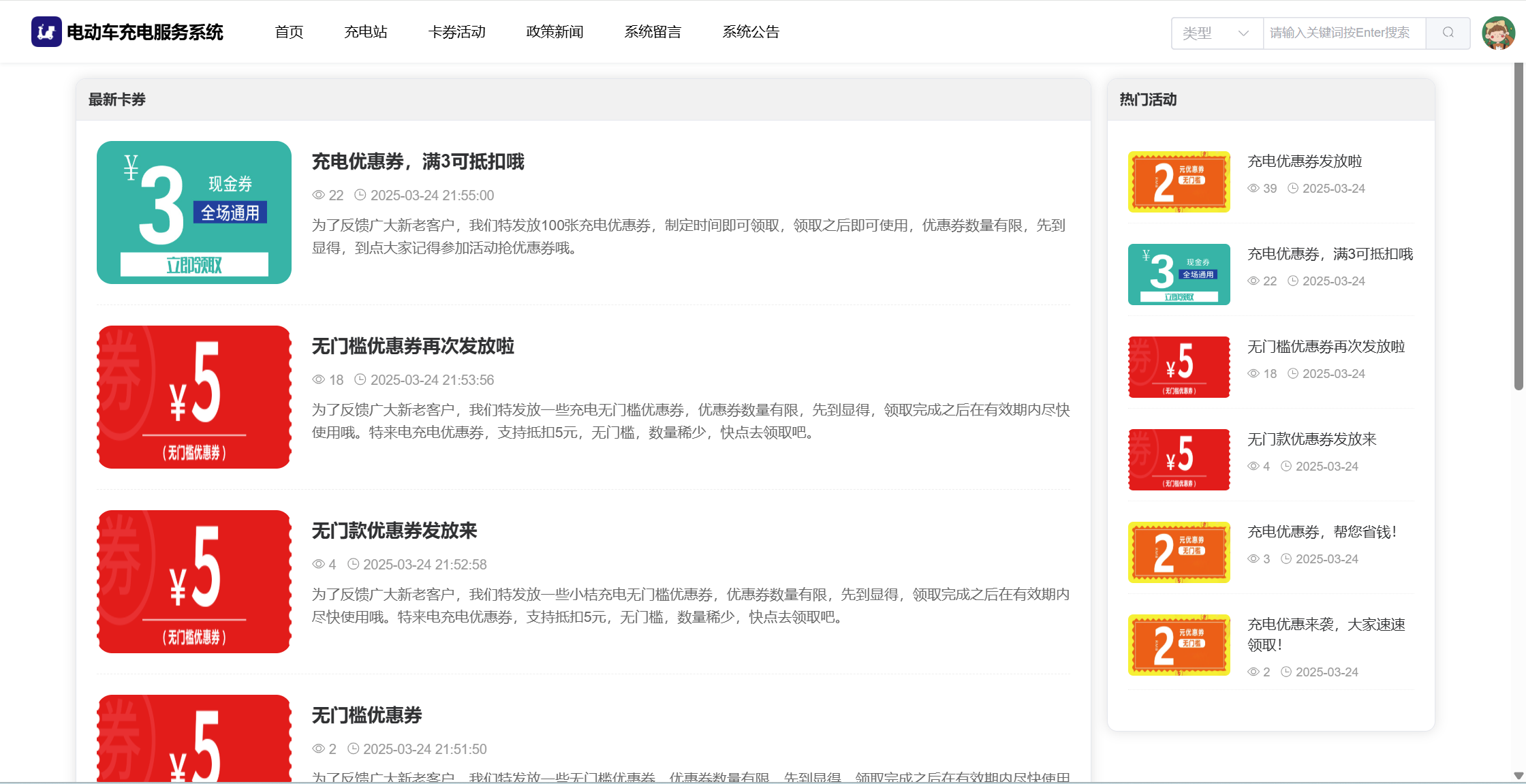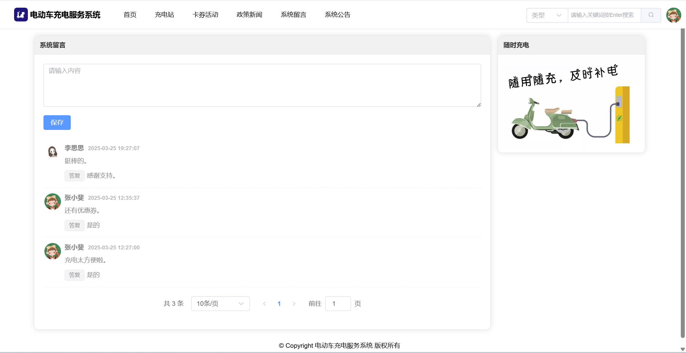 基于SpringBoot3+Vue3前后端分离的电动车充电服务网站,本人原创开发。