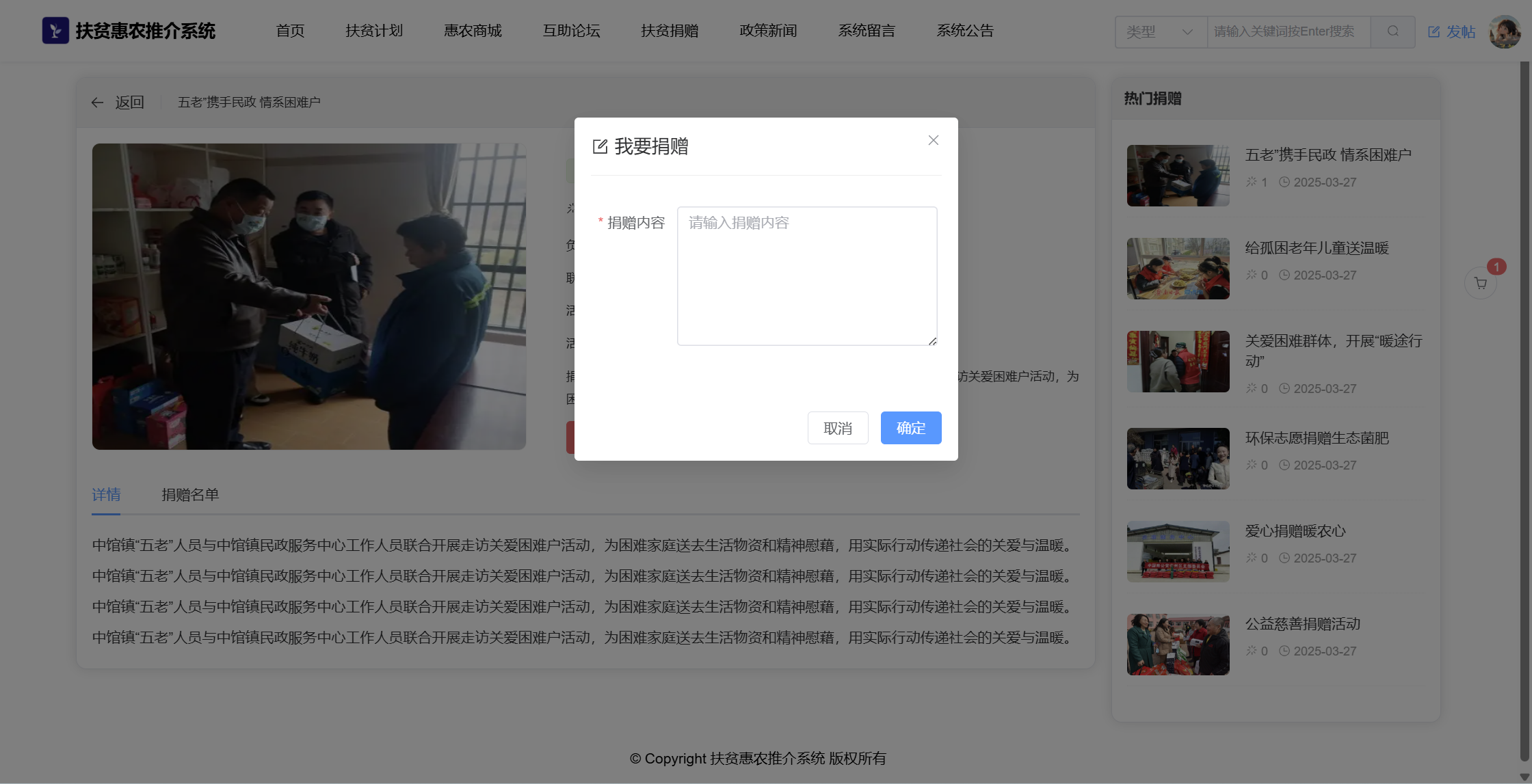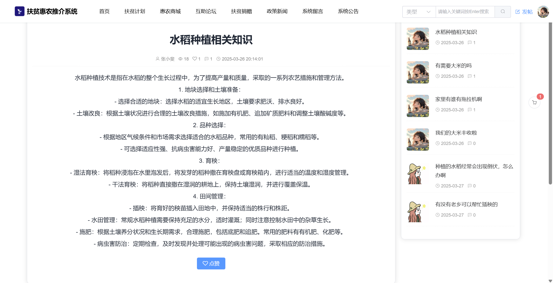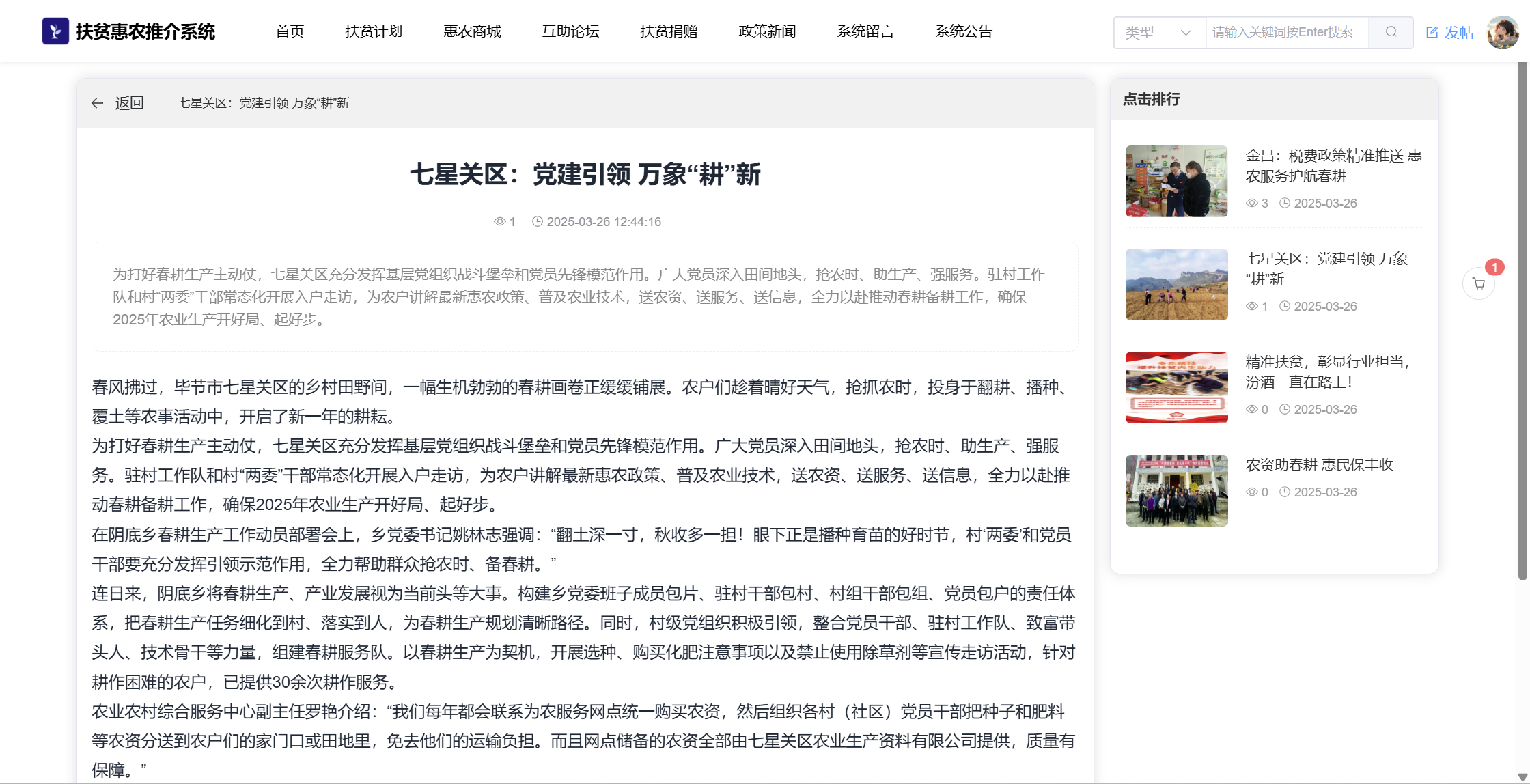 基于SpringBoot3+Vue3前后端分离的扶贫惠农推介系统,本人原创开发。