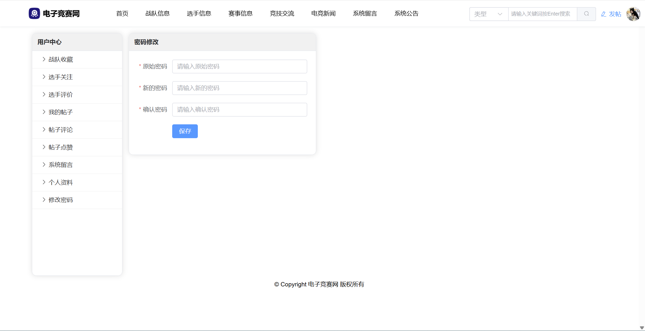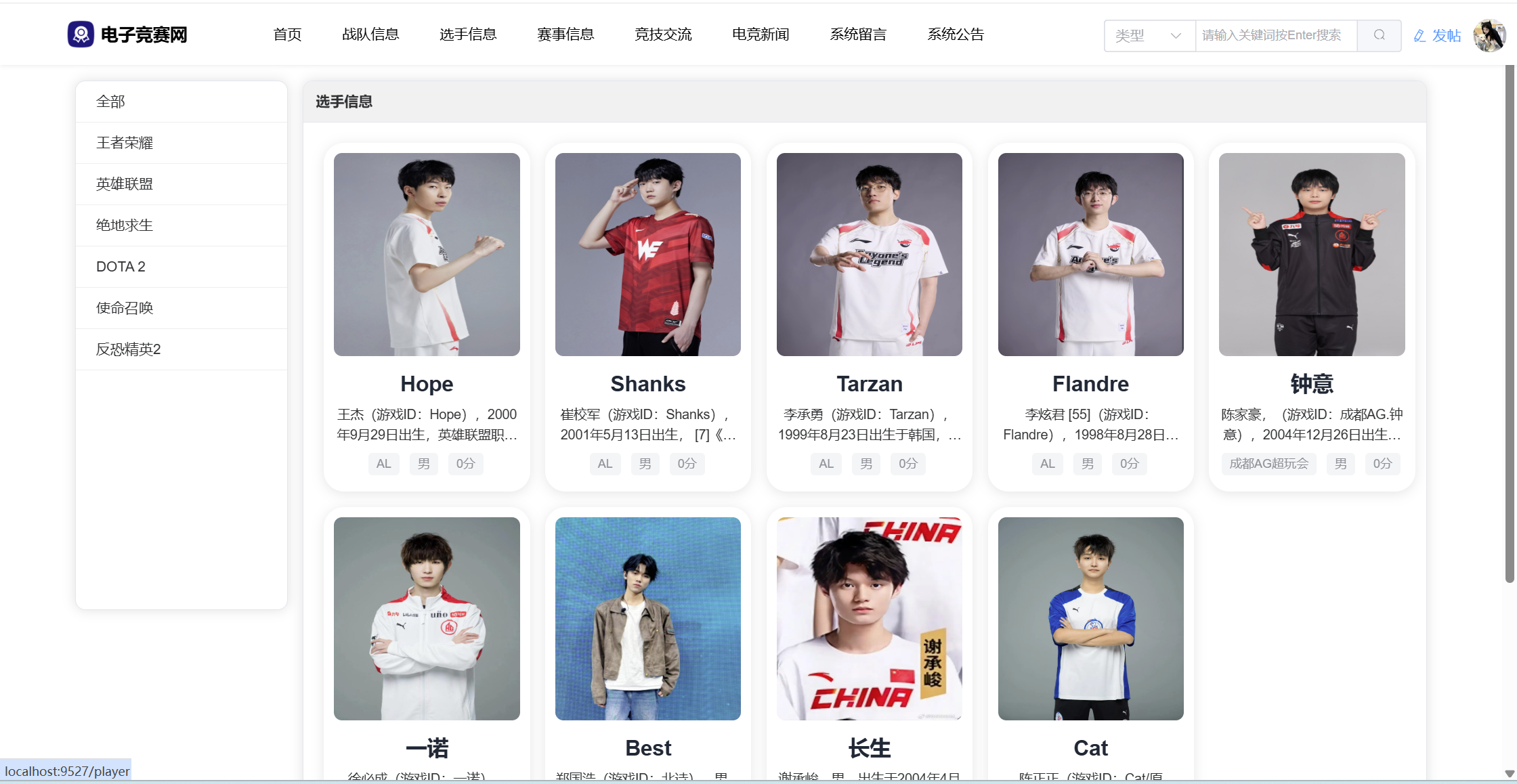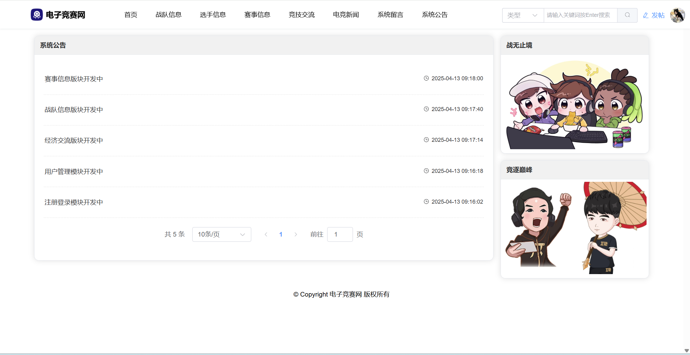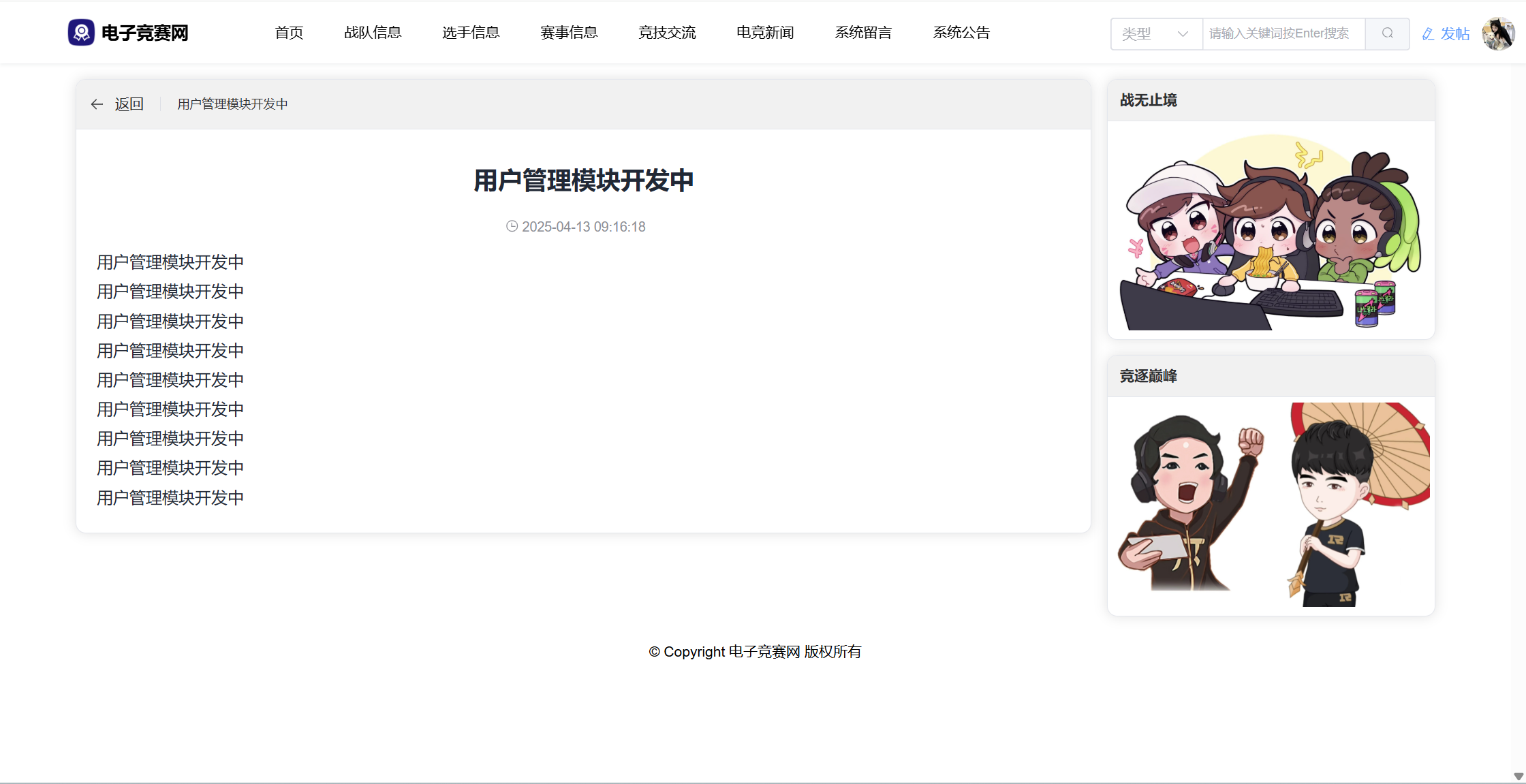 基于SpringBoot3+Vue3前后端分离的电竞赛事网站,本人原创开发。