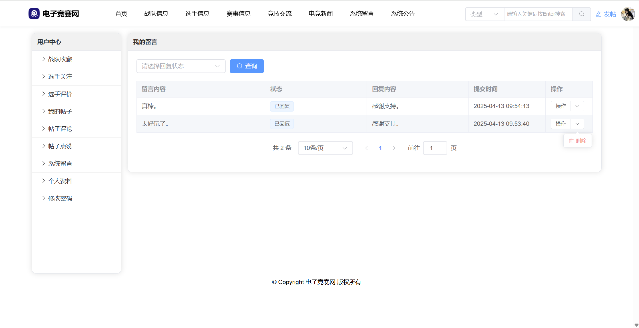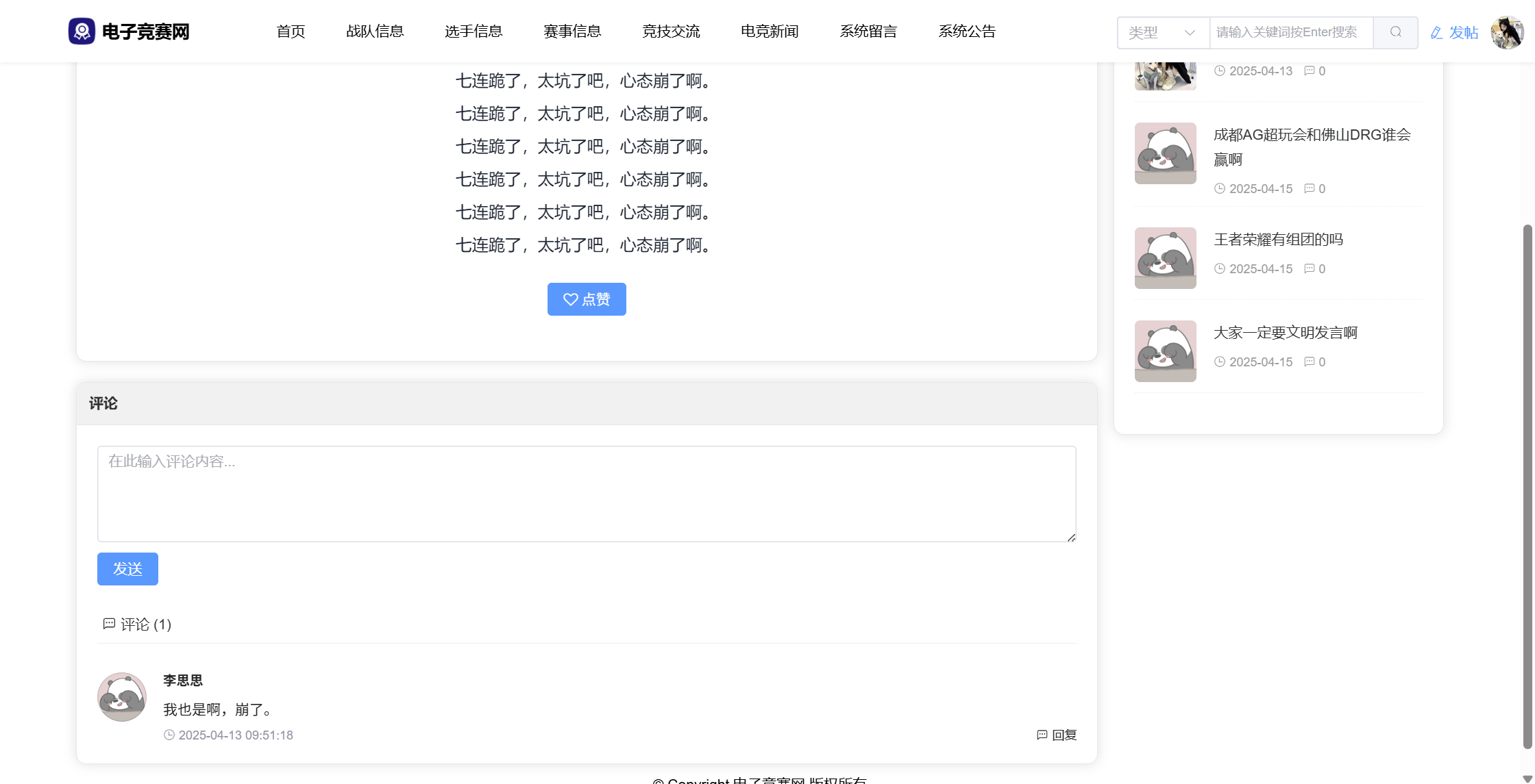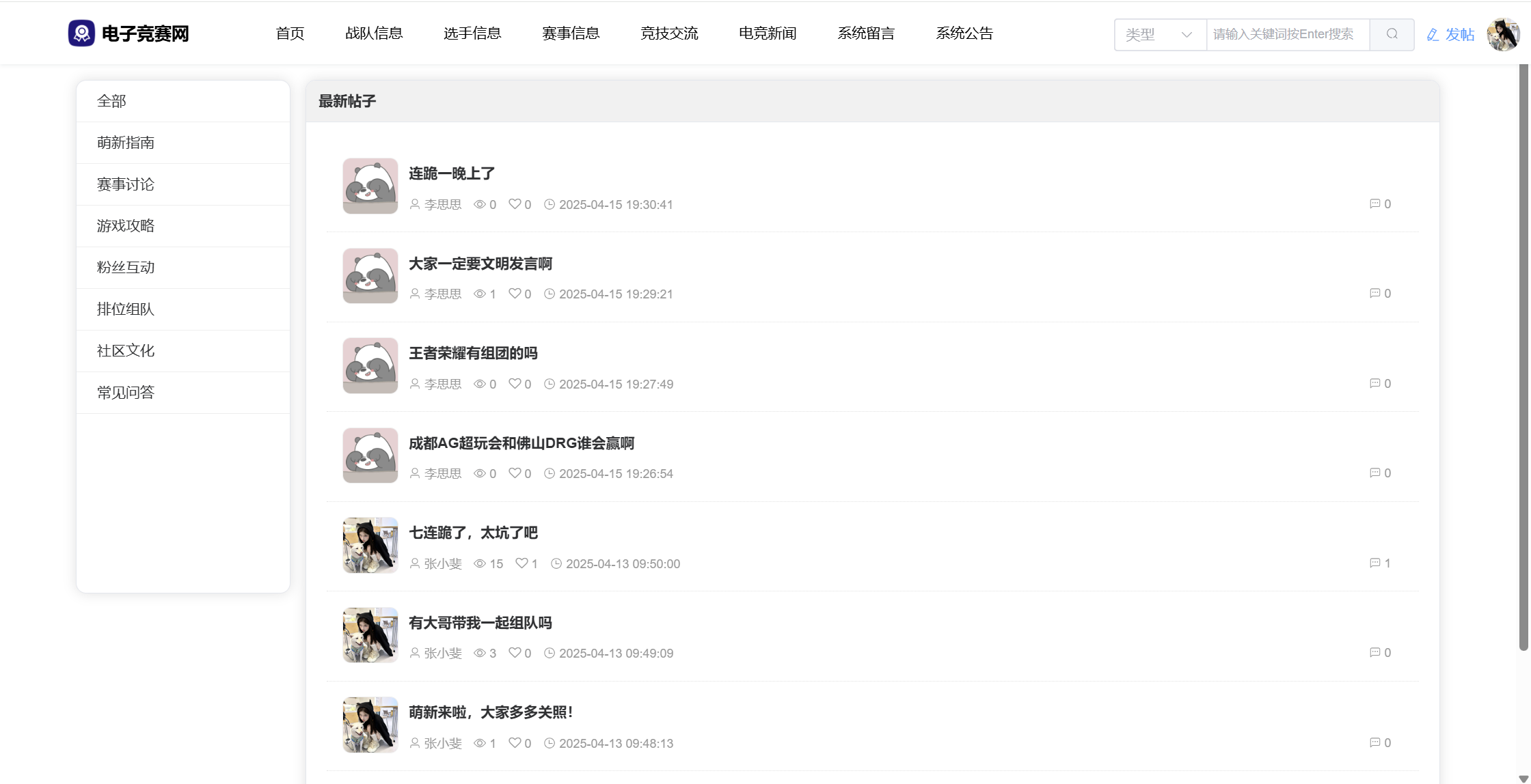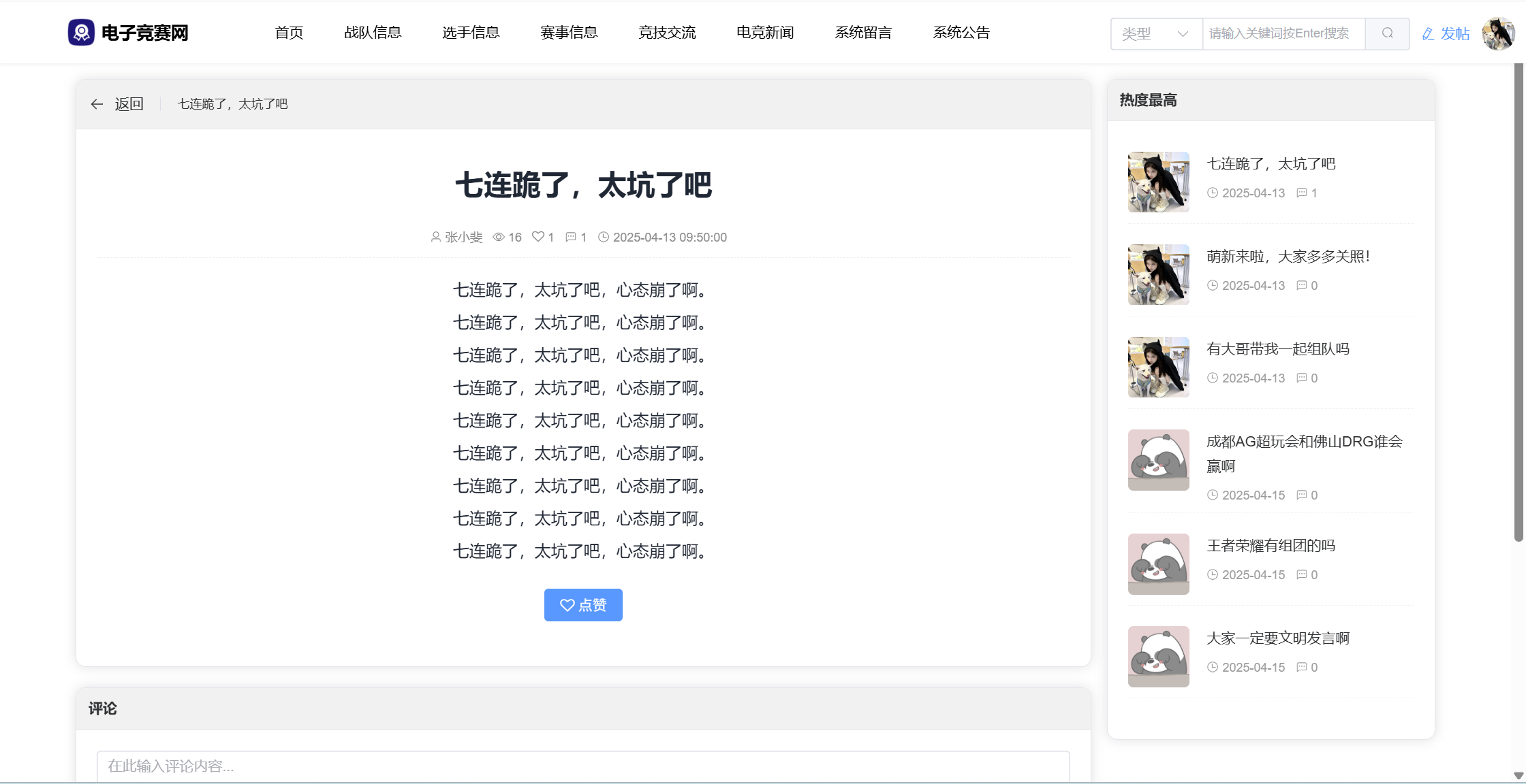 基于SpringBoot3+Vue3前后端分离的电竞赛事网站,本人原创开发。