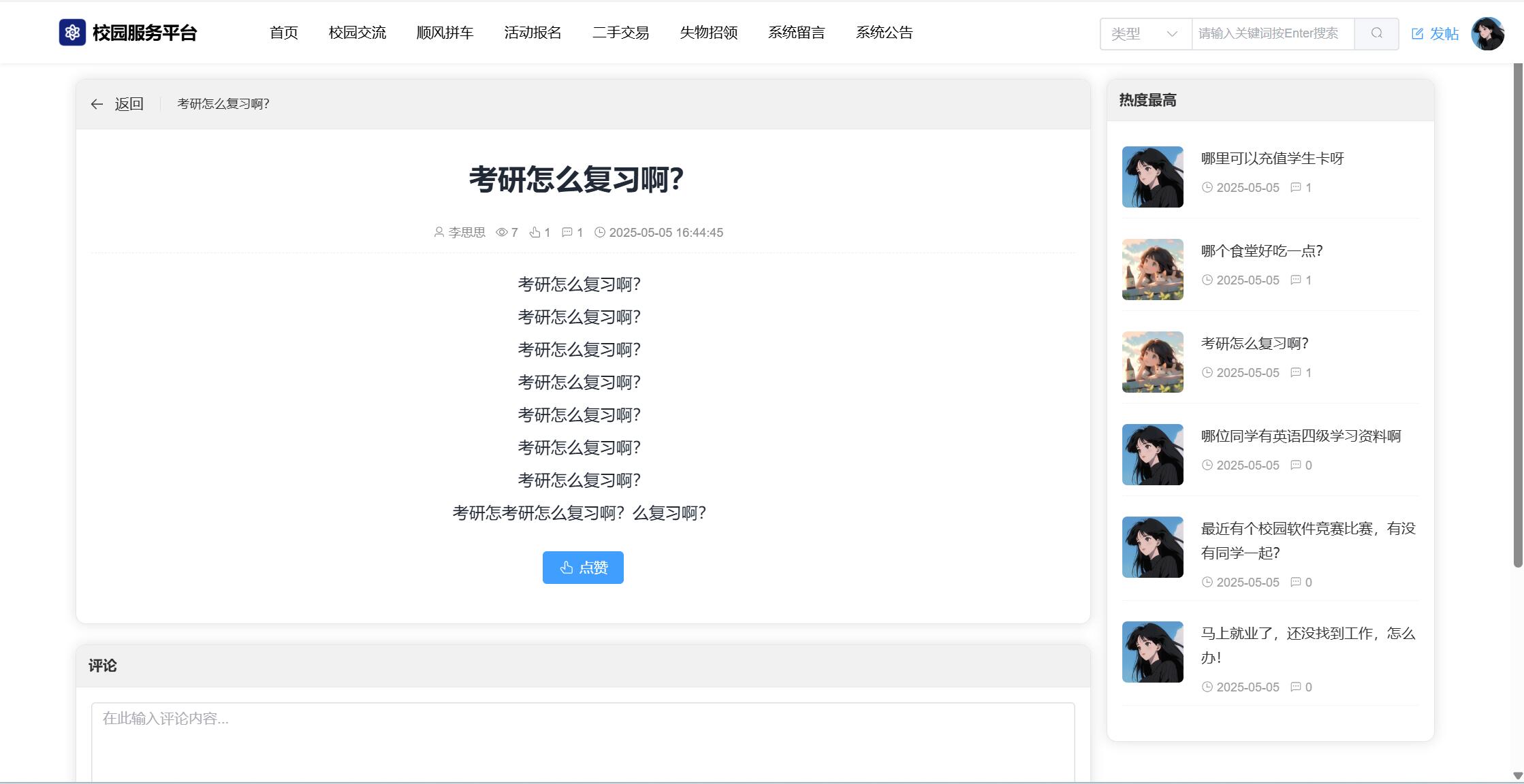 基于SpringBoot3+Vue3前后端分离的校园服务平台,本人原创开发。