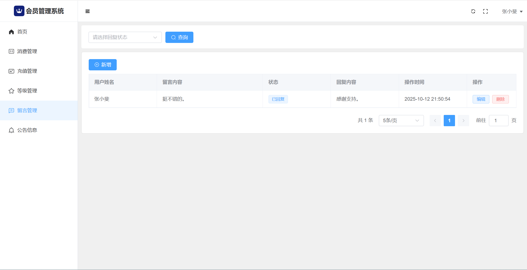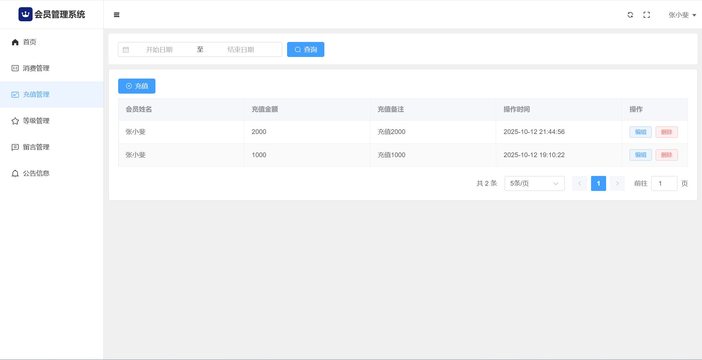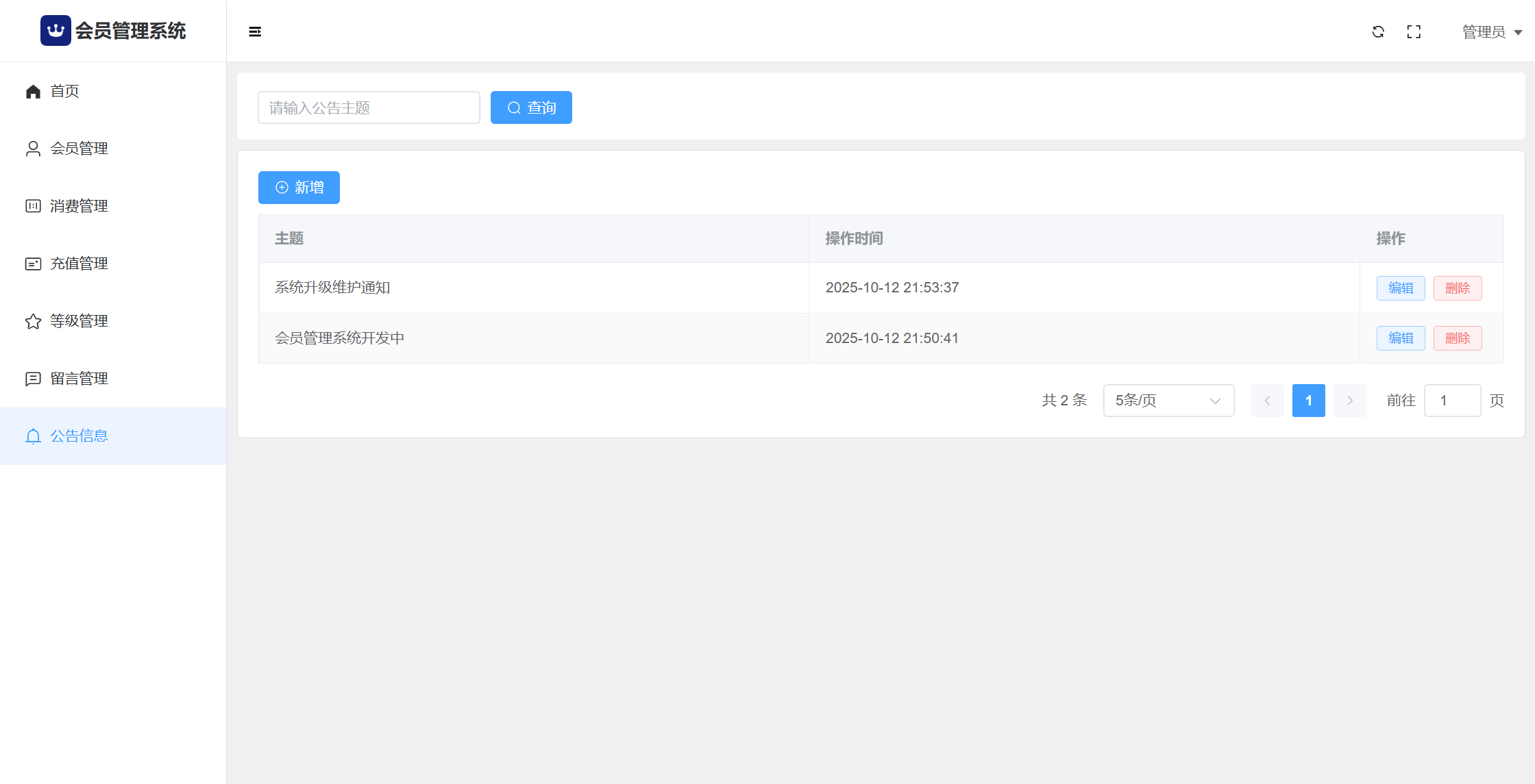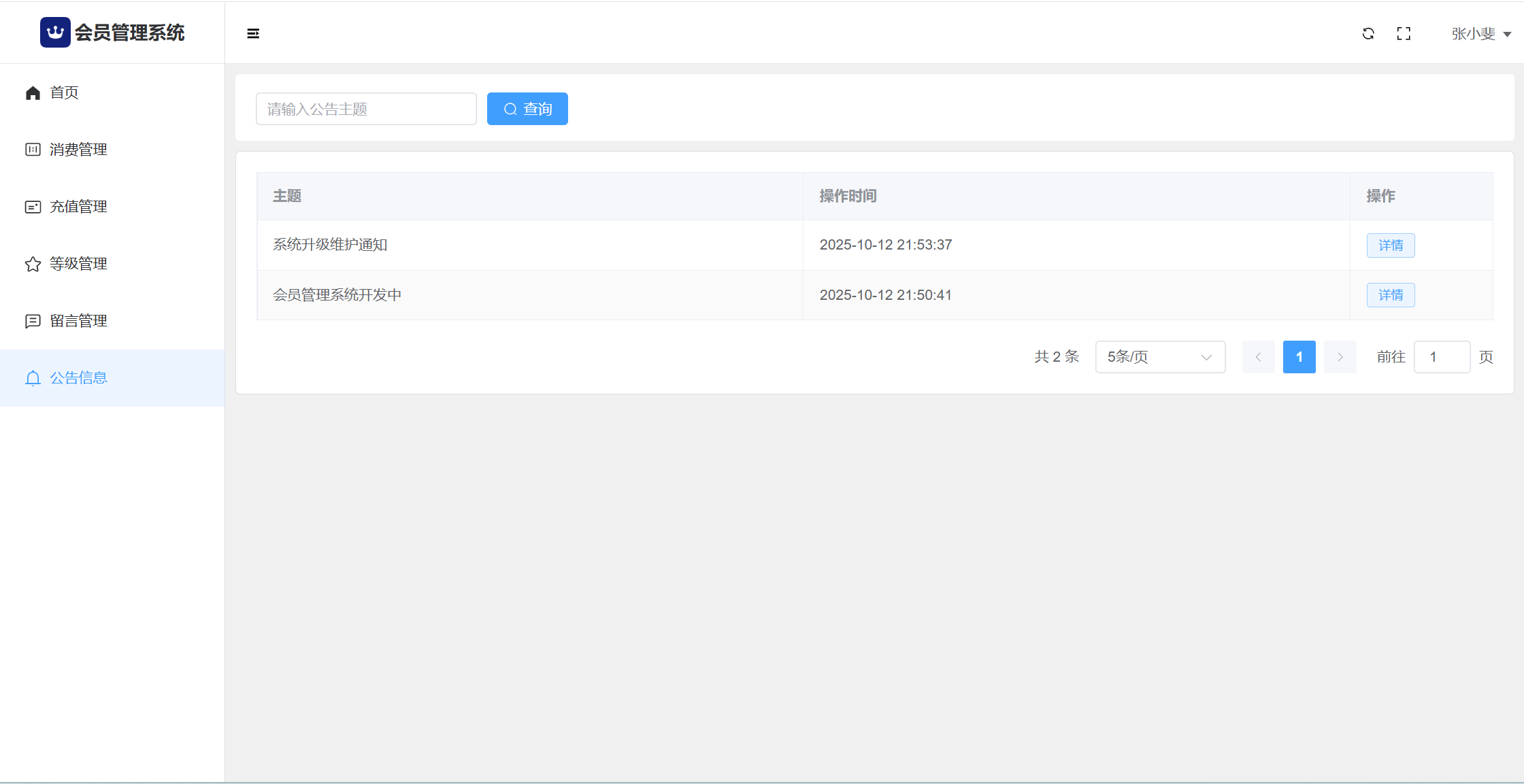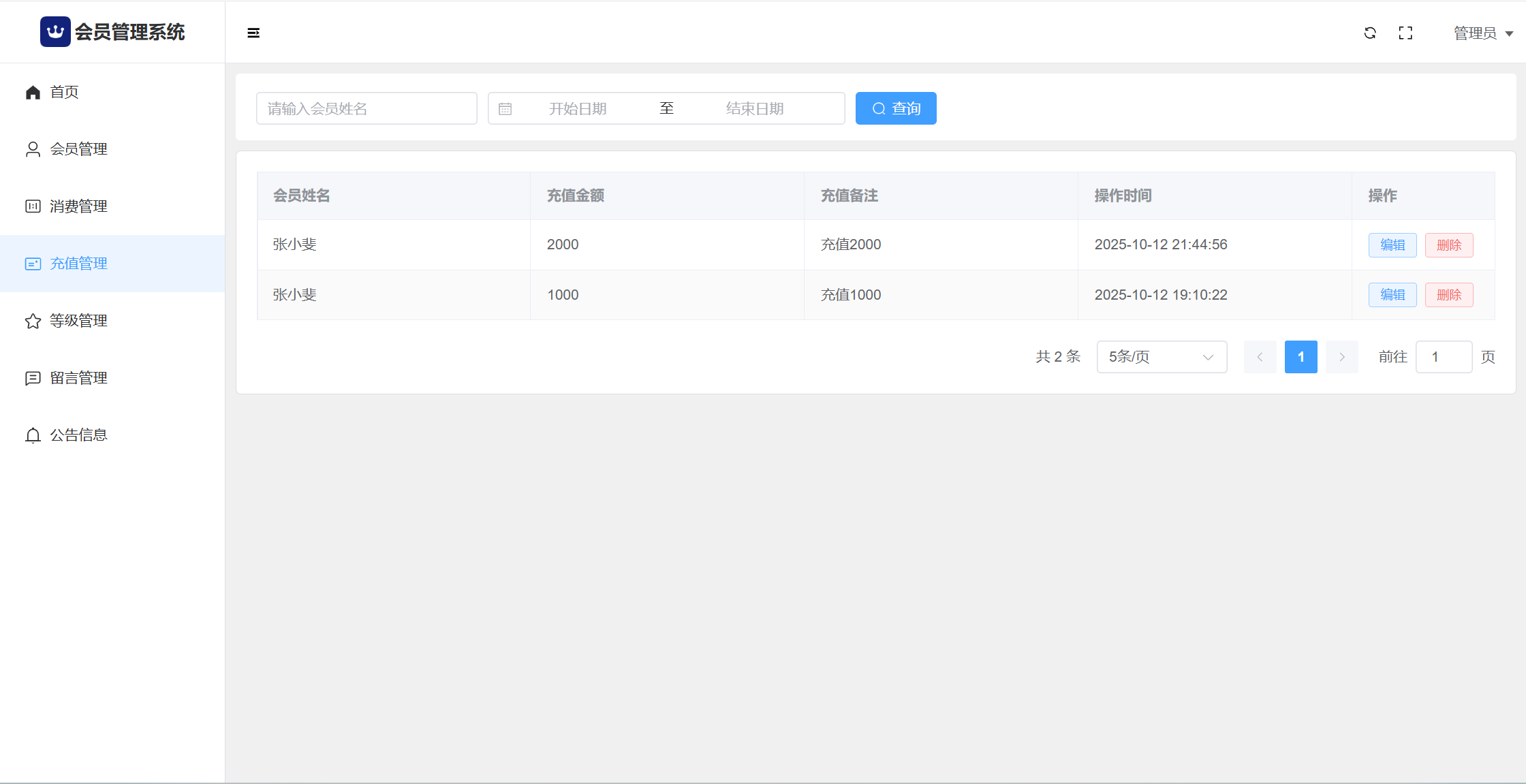 基于SpringBoot3+Vue3前后端分离的会员管理系统,系统包含管理员、用户角色,功能如下: