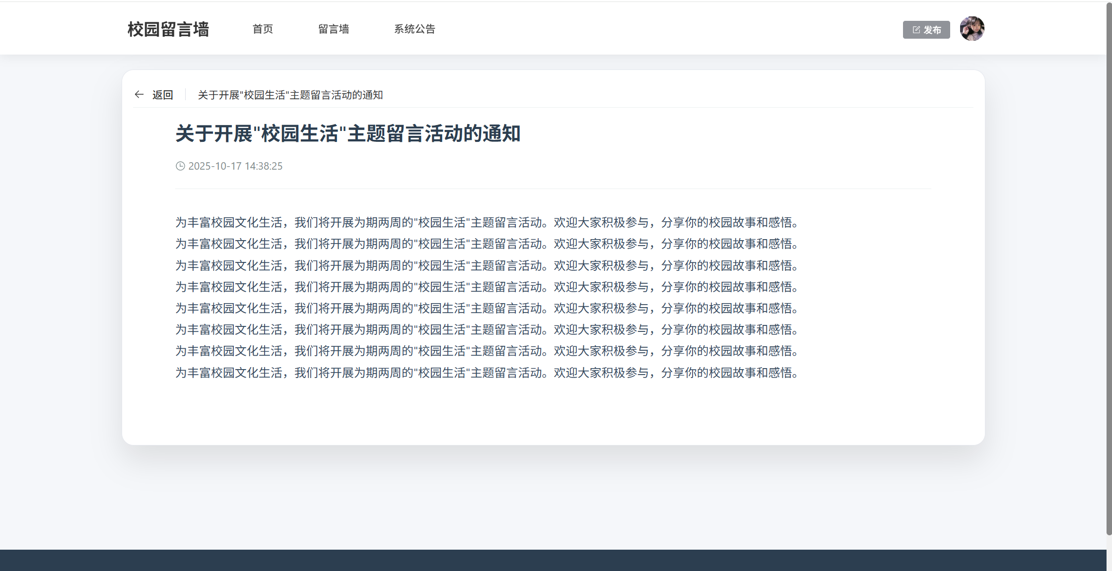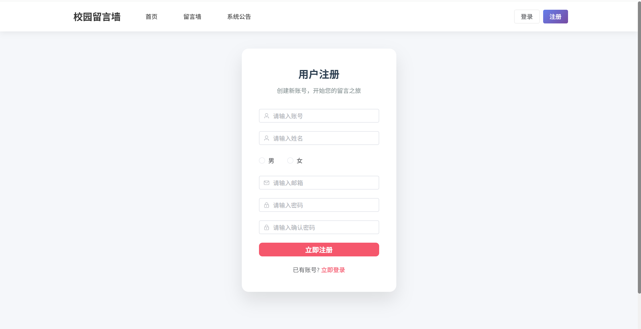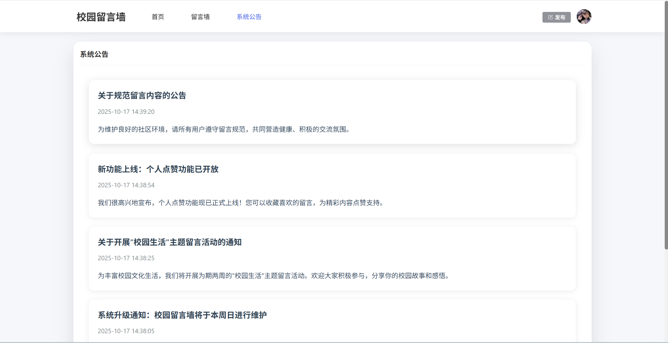 基于SpringBoot3+Vue3前后端分离的校园留言墙系统,本人原创开发。